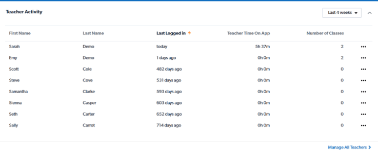 Monitore e apoie seus educadores de forma mais eficaz com insights sobre o tempo de interação deles com a plataforma. O painel fornece informações sobre a quantidade de tempo em que os professores permanecem conectados e seu envolvimento geral com a Matific. Acompanhe e engaje seus professores, compreendendo melhor seus padrões de uso da Matific.