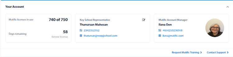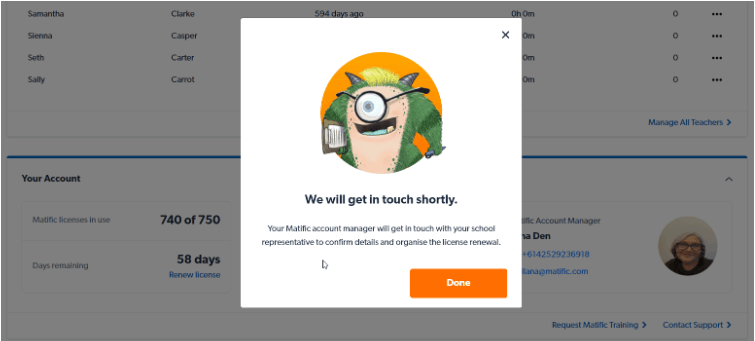 - Você pode solicitar a renovação de sua licença e até mesmo solicitar um Treinamento Matific!