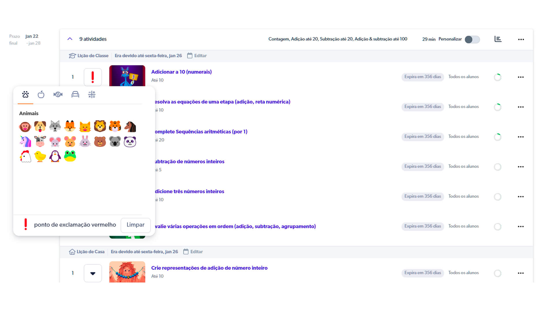 Uma das principais novidades para professores na Matific é a introdução de emojis na área do professor, proporcionando uma maneira divertida e intuitiva de priorizar e destacar trabalhos atribuídos a cada aluno. Com uma ampla gama de emojis disponíveis, os professores agora podem sinalizar atividades que requerem atenção especial, seja para enfatizar sua importância, indicar urgência ou simplesmente reconhecer o esforço dos alunos.