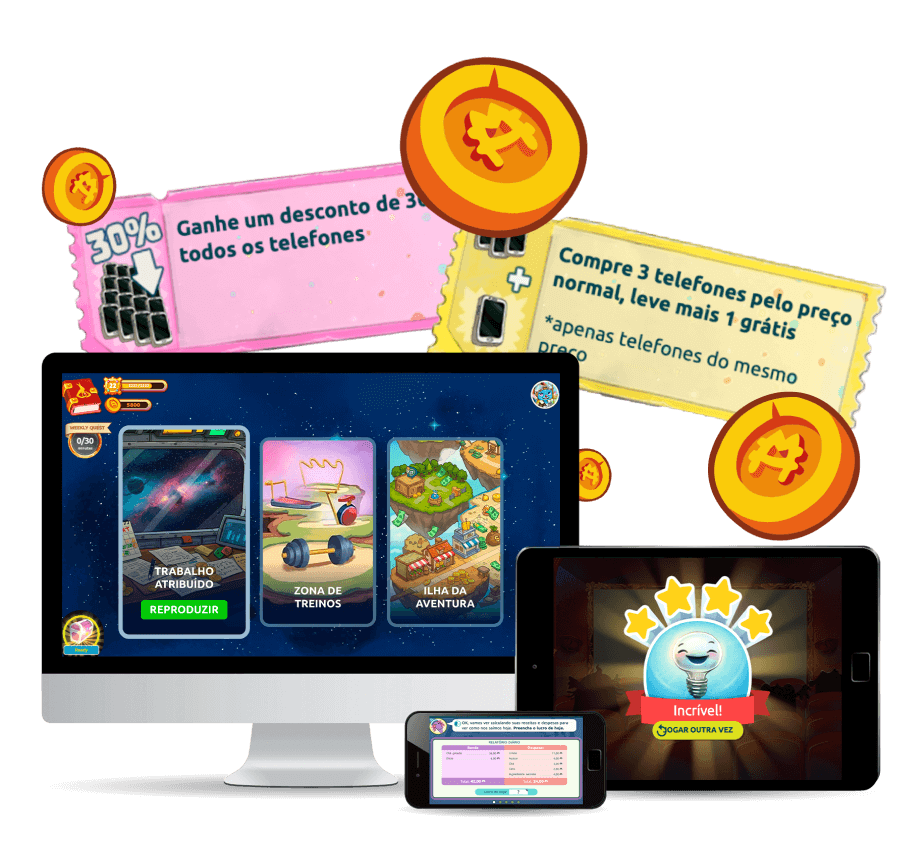 Uma solução digital e completa para o desenvolvimento da consciência financeira dos alunos.
